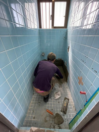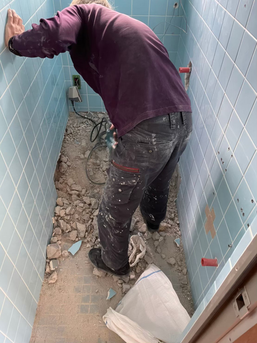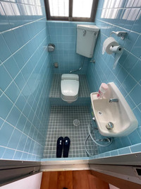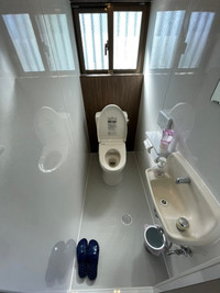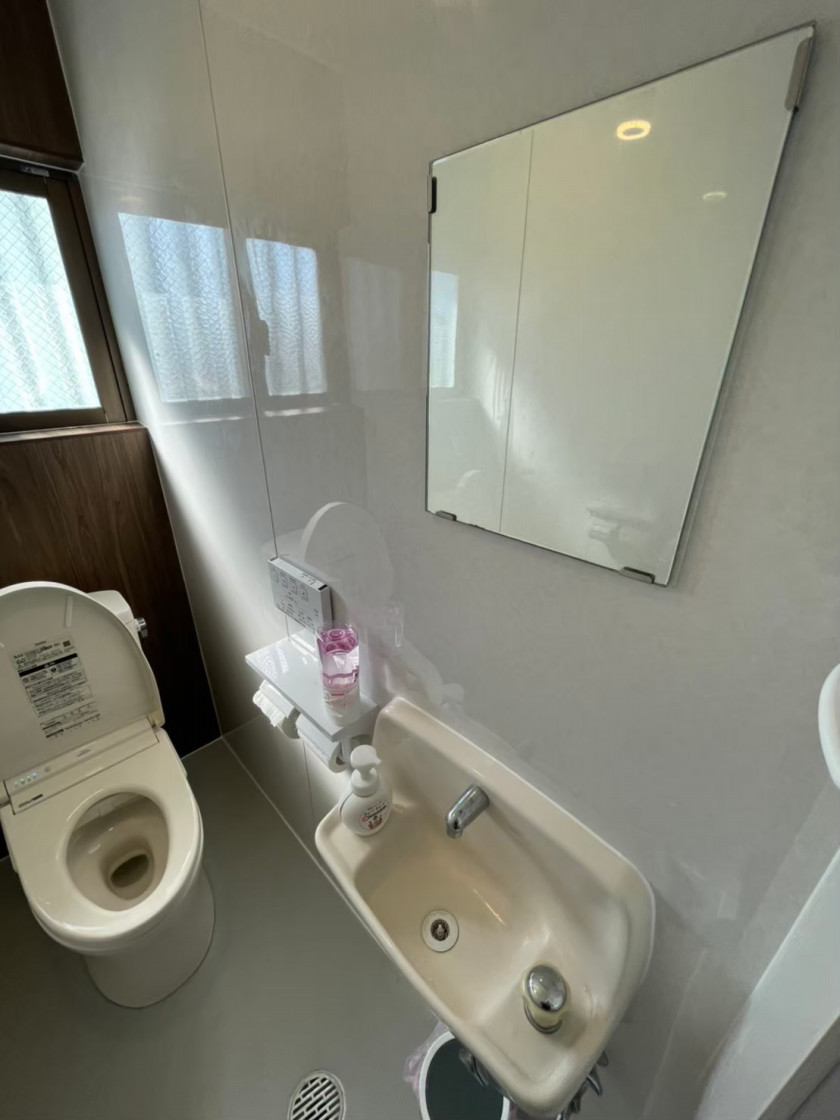 和式→洋式トイレ、壁パネル仕上げ、床シートを貼りました。